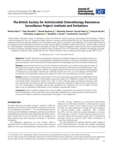 Allen, Michael, Reynolds, Rosy, Mushtaq, Shazad, Nsonwu, Olisaeloka, Hope, Russell, Horner, Carolyne, Longshaw, Christopher, Parcell, Benjamin J. and Livermore, David M. (2025) The British Society for Antimicrobial Chemotherapy Resistance Surveillance Project: Methods and limitations. Journal of Antimicrobial Chemotherapy, 80 (Supplement_4). iv7–iv21. ISSN 0305-7453