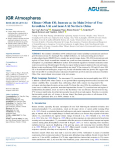 Yang, Tao, Yang, Bao, Wang, Shuangjuan, Boucher, Étienne, Rossi, Sergio, Hermoso, Ignacio and Osborn, Timothy J. (2025) Climate offsets CO2 increase as the main driver of tree growth in arid and semi-arid northern China. Journal of Geophysical Research: Atmospheres, 130 (20). ISSN 2169-897X