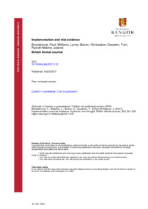 Brocklehurst, P. R., Williams, L., Burton, C., Goodwin, T. and Rycroft-Malone, J. (2017) Implementation and trial evidence:A plea for fore-thought. British Dental Journal, 222 (5). pp. 331-335. ISSN 0007-0610