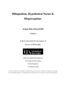 Hill, Joshua (2025) Bilingualism, Hypothetical Norms & Misperceptions. Doctoral thesis, University of East Anglia.