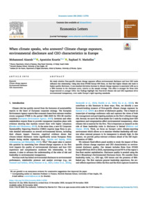 Alzarah, Mohammed, Kourtis, Apostolos and Markellos, Raphael (2026) When climate speaks, who answers? Climate change exposure, environmental disclosure and CEO characteristics in Europe. Economics Letters, 258. ISSN 0165-1765