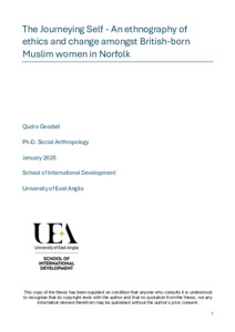 Goodall, Qudra (2025) ‘The Journeying Self’ – An ethnography of ethics and change amongst young British-born Muslim women in Norfolk. Doctoral thesis, University of East Anglia.