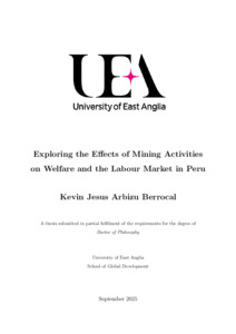 Arbizu Berrocal, Kevin Jesus (2025) Exploring the Effects of Mining Activities on Welfare and the Labour Market in Peru. Doctoral thesis, University of East Anglia.
