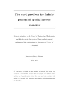 Warne, Jonathan Henry (2025) The word problem for finitely presented special inverse monoids. Doctoral thesis, University of East Anglia.