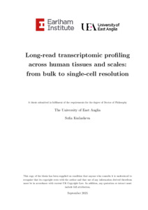 Kudasheva, Sofia (2025) Long-read transcriptomic profiling across human tissues and scales: from bulk to single-cell resolution. Doctoral thesis, University of East Anglia.