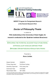 Jordan, Anne (2025) Exploring The Potential Adjuvant Role Of Bacterial Extracellular Vesicles Derived From Bifidobacterium Pseudocatenulatum Strains. Doctoral thesis, University of East Anglia.