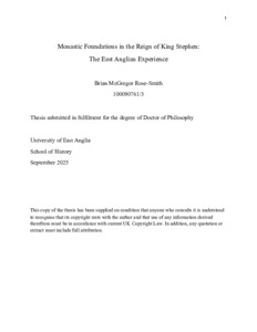 Rose-Smith, Brian McGregor (2025) Monastic Foundations in the Reign of King Stephen: The East Anglian Experience. Doctoral thesis, University of East Anglia.