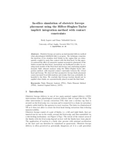 Lapeer, Rudy and Valladolid Garcia, Omar (2025) In-silico simulation of obstetric forceps placement using the Hilber-Hughes-Taylor implicit integration method with contact constraints: Simulation of obstetric forceps placement. In: Lecture Notes in Bioengineering (LNBE). Lecture Notes in Bioengineering . Springer, AUS. (In Press)