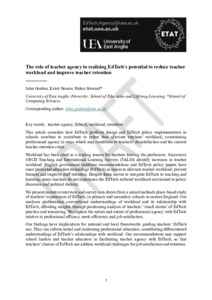 Nourie, Kristi, Steward, Helen and Gordon, John (2026) The role of teacher agency in realising EdTech’s potential to reduce teacher workload and improve teacher retention. British Educational Research Journal. ISSN 0141-1926