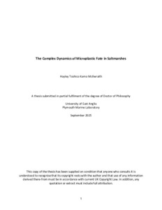 McIlwraith, Hayley Toshico Kamo (2025) The Complex Dynamics of Microplastic Fate in Saltmarshes. Doctoral thesis, University of East Anglia.