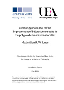 Jones, Maximillian R. W. (2025) Exploring genetic loci for the improvement of inflorescence traits in the polyploid cereals wheat and tef. Doctoral thesis, University of East Anglia.