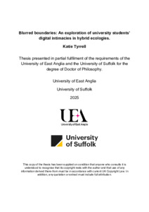 Tyrrell, Katie (2025) Blurred boundaries: An exploration of university students’ digital intimacies in hybrid ecologies. Doctoral thesis, University of East Anglia.