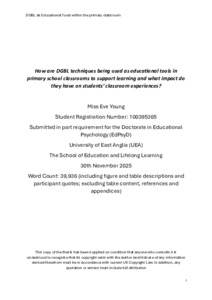 Young, Eve (2025) How are DGBL techniques being used as educational tools in primary school classrooms to support learning and what impact do they have on students’ classroom experiences? Doctoral thesis, University of East Anglia.