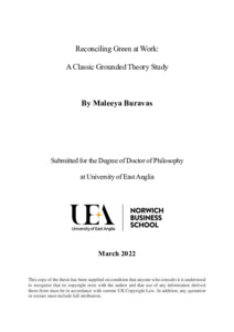 Buravas, Maleeya (2022) Reconciling green at work: a classic grounded theory study. Doctoral thesis, University of East Anglia.