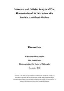 Gate, Thomas (2022) Molecular and Cellular Analysis of Zinc Homeostasis and its Interaction with Auxin in Arabidopsis thaliana. Doctoral thesis, University of East Anglia.