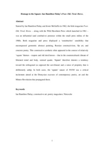 Hair, Ross (2024) Homage to the Square: Ian Hamilton Finlay's Poor. Old. Tired. Horse. Textual Practice, 38 (6). pp. 945-966. ISSN 0950-236X