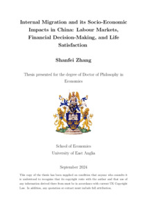 Zhang, Shanfei (2024) Internal Migration and its Socio-Economic Impacts in China: Labour Markets, Financial Decision-Making, and Life Satisfaction. Doctoral thesis, University of East Anglia.