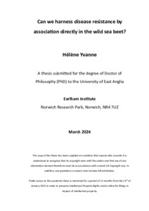 Yvanne, Hélène (2024) Can we harness disease resistance by association directly in the wild sea beet? Doctoral thesis, University of East Anglia.