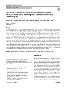 Ewing, Louise, Althaus, Nadja, Farran, Emily K., Papasavva, Michael, Mares, Inês and Smith, Marie L. (2025) Exploring the development of face recognition across childhood via logistic mixed-effects modelling of the standardised Cambridge Face Memory Test. Behavior Research Methods, 57 (4). ISSN 1554-351X