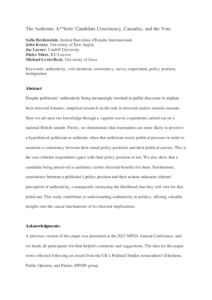 Breitenstein, Sofia, Kenny, John, Larner, Jac, Stiers, Dieter and Lewis-Beck, Michael S. (2025) The Authentic A**hole: Candidate consistency, causality, and the vote. Polity, 57 (2). pp. 240-252. ISSN 0032-3497