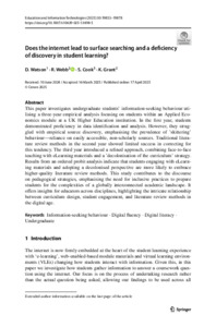 Watson, Duncan, Webb, Robert, Cook, Steve and Grant, Kevin (2025) Does the internet lead to surface searching and a deficiency of discovery in student learning? Education and Information Technologies, 30. 19853–19878. ISSN 1360-2357