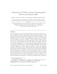 Hu, Ziyi, Cao, Yue, Li, Xinyu, Zhang, Xu, Zhang, Chuanke and Liu, Zhi (2025) A real-time UAV delivery system considering dock selection and spatial conflict. Expert Systems with Applications, 281. ISSN 0957-4174